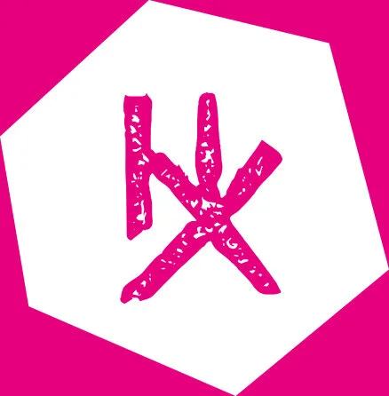 a simplified form of a stone. An abstract sign was created by combining two characters from the oldest variants of the Nordic script corresponding to the letters taken from the first letters of the name Hunter Gatherer, "H" and "G". The logo was prepared and imprinted in linocut technique to resemble the appearance of the first inscriptions made with Nordic runes. Then, it was scanned and preapred as a vector graphic.